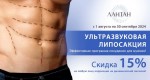 Ультразвуковая липосакция со скидкой 15% на любую зону коррекции на динамический липолиз! Акция действует с 1 августа по 30 сентября 2024 года.