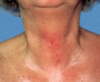 - Гнойничковые элементы на коже лица, шеи, декольте