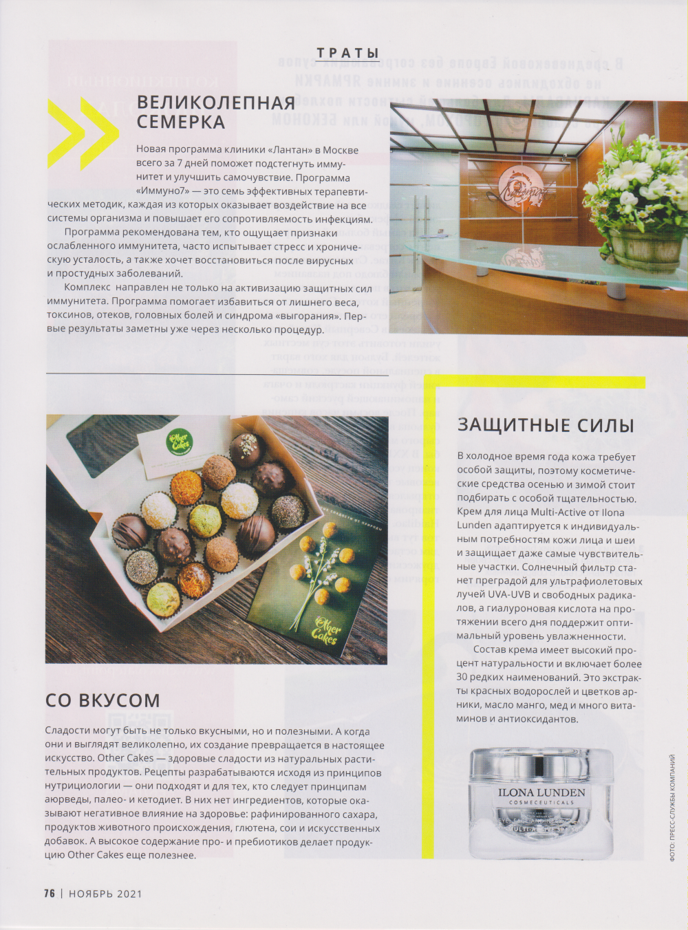 В клинике «Лантан» разработали новую программу «Иммуно7», нацеленную на усиление защитных сил организма в холодное время года. Специалисты клиники говорят, что программа повышает общий тонус и защитные свойства организма в борьбе с вирусными инфекциями.