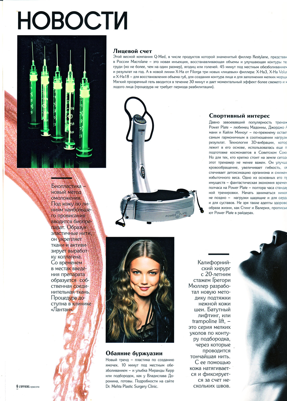 Биопластика - новый метод омоложения. Под кожу по линиям наибольшего провисания вводится биопрепарат. Образуя эластичные нити он укрепляет ткани и активизирует выработку коллагена. Со временем в местах введения препарата образуется собственная соединительная ткань. Процедура доступна в клинике «Лантан»