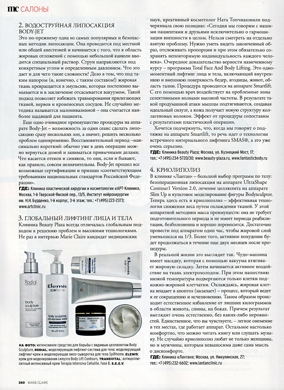 В клинике «Лантан» - большой выбор программ по телу: безоперационная липосакция на аппарате UltraShape Contour1 Version 2.0, лечение целлюлита на аппарате Slim Up и культовое моделирование фигуры Bodysculptor. Теперь здесь есть и криолиполиз — эффективная технология снижения веса путем охлаждения тканей. У этой аппаратной методики масса преимуществ: она не требует подготовительного периода и не имеет периода реабилитации, безболезненна и хорошо переносится. Достаточно провести под аппаратом один час, чтобы жировой слой уменьшился на 1/3. Более того, активное похудение будет продолжаться в течение еще двух месяцев после процедуры.