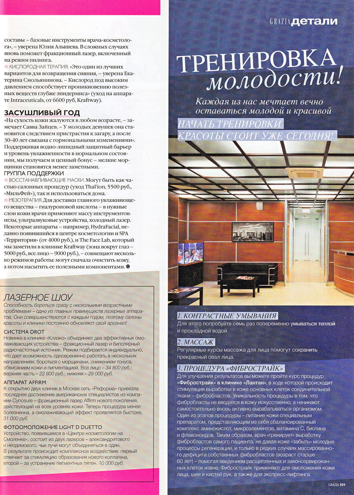 Для улучшения результатов вы можете пройти курс процедур "Фибрострайк" в клинике "Лантан", в ходе которой происходит стимуляция выработки в коже основных клеток соединительной ткани - фибробластов. Уникальность процедуры в том, что фибробласты не вводятся в кожу искусственно, а начинают самостоятельно вновь активно вырабатываться организмом. Один из этапов процедуры - питание кожи специальным препаратом, представляющим из себя сбалансированный комплекс аминокислот, микроэлементов, витамина С, биотина и флавоноидов. Таким образом, врач "тренирует" выработку фибробластов самого пациента, не давая коже "забыть" молодые процессы регенерации, и только в редких случаях массированного дефицита собственных фибробластов (возраст старше 60 лет) - помогая введением расщепленных и законсервированных клеток извне. Фибрострайк применяют для омоложения кожи лица, шеи, кисти рук, а также для экспресс-лифтинга.