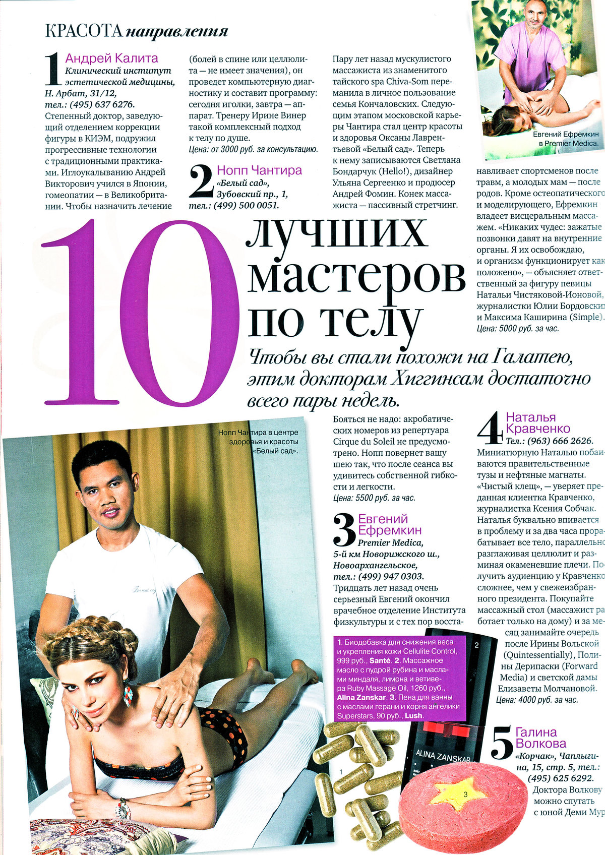 «Я видела, как несовершенные физиотерапевтические аппараты восстанавливали людей после травм. Что уж говорить о современных: избавиться от лишнего веса с их помощью не составляет труда», — авторитетно рассуждает кандидат медицинских наук и конфидентка фигуристки Анастасии Гребенкиной. Адепт аппаратной косметологии, Имаева за две недели уберет с талии десять сантиметров с помощью процедуры Split Fat System: «В ход идет новый низкоинтенсивный лазер. А значит, это не только эффективно, но и безболезненно». Цена: 40 000 руб. за шесть процедур SplitFat System.