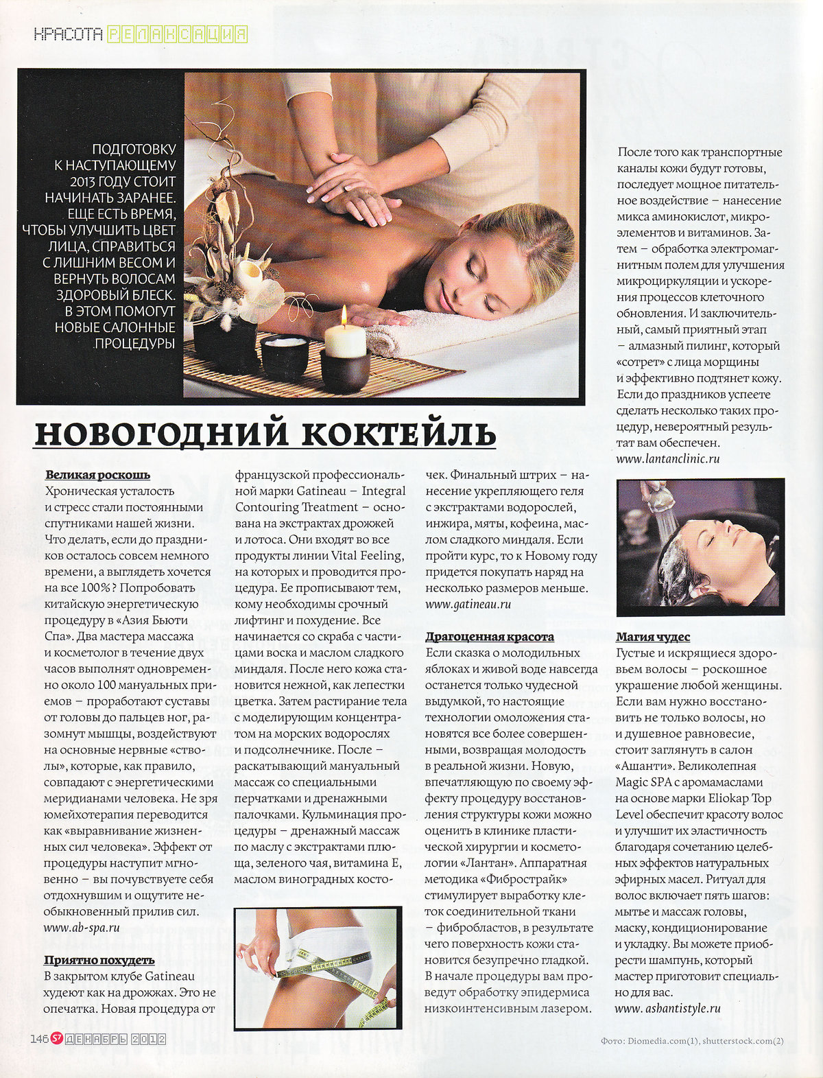 После того как транспортные каналы кожи будут готовы, последует мощное питательное воздействие - нанесение микса аминокислот, микроэлементов и витаминов. Затем - обработка электромагнитным полем для улучшения микроциркуляции и ускорения процессов клеточного обновления. И заключительный, самый приятный этап - алмазный пилинг, который «сотрет» с лица морщины и эффективно подтянет кожу. Если до праздников успеете сделать несколько таких процедур, невероятный результат вам обеспечен. www.lantanclinic.ru