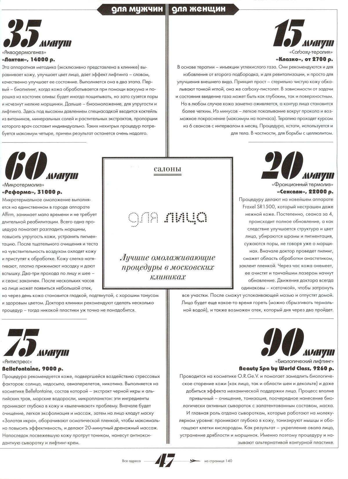 Эта аппаратная методика (эксклюзивно представлена в клинике) выравнивает кожу, улучшает цвет лица, дает эффект лифтинга - словом, качественно улучшает ее состояние. Выполняется она в два этапа. Первый - биопилинг, когда кожа обрабатывается при помощи вакуума и порошка из косточек оливы: будет иногда пощипывать, но зато сузятся поры и исчезнут мелкие морщинки. Дальше - биоомоложение, для упругости и лифтинга. Здесь под высоким давлением спецнасадкой вводится коктейль из витаминов, минеральных солей и растительных экстрактов, пропорции которого врач составит индивидуально. Таких нехитрых процедур потребуется максимум четыре, причем результат останется очень надолго.