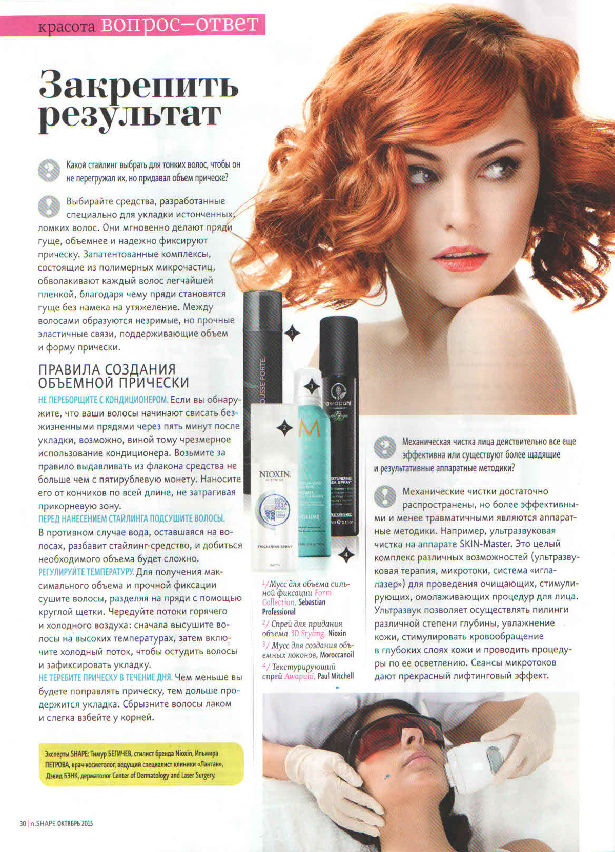 Эксперт SHAPE Тимур БЕГИЧЕВ, стилист бренда Nioxin, Ильмира ПЕТРОВА, врач-косметолог, ведущий специалист клиники «Лантан», Дэвид БЭНК, дерматолог Center of Dematology and laser Surgery.