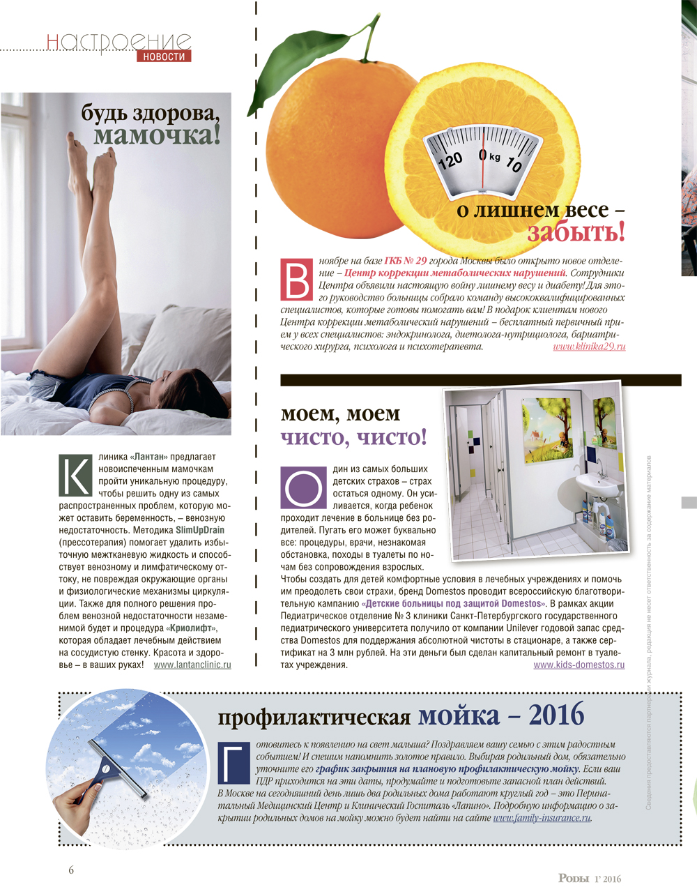 Клиника «Лантан» предлагает новоипеченным мамочкам пройти уникальную процедуру, чтобы решить одну из самых распространенных проблем, которую может оставить беременность, -венозную недостаточность. Методика SlimUpDrain (прессотерапия) помогает удалить избыточную межтканевую жидкость и способствует венозному и лимфатическому оттоку, не повреждая окружающие органы и физиологические механизмы циркуляции. Также для полного решения проблем венозной недостаточности незаменимой будет и процедура «Криолифт», которая обладает лечебным действием на сосудистую стенку. Красота и здоровье - в ваших руках! www.lanlanc.linic.ru