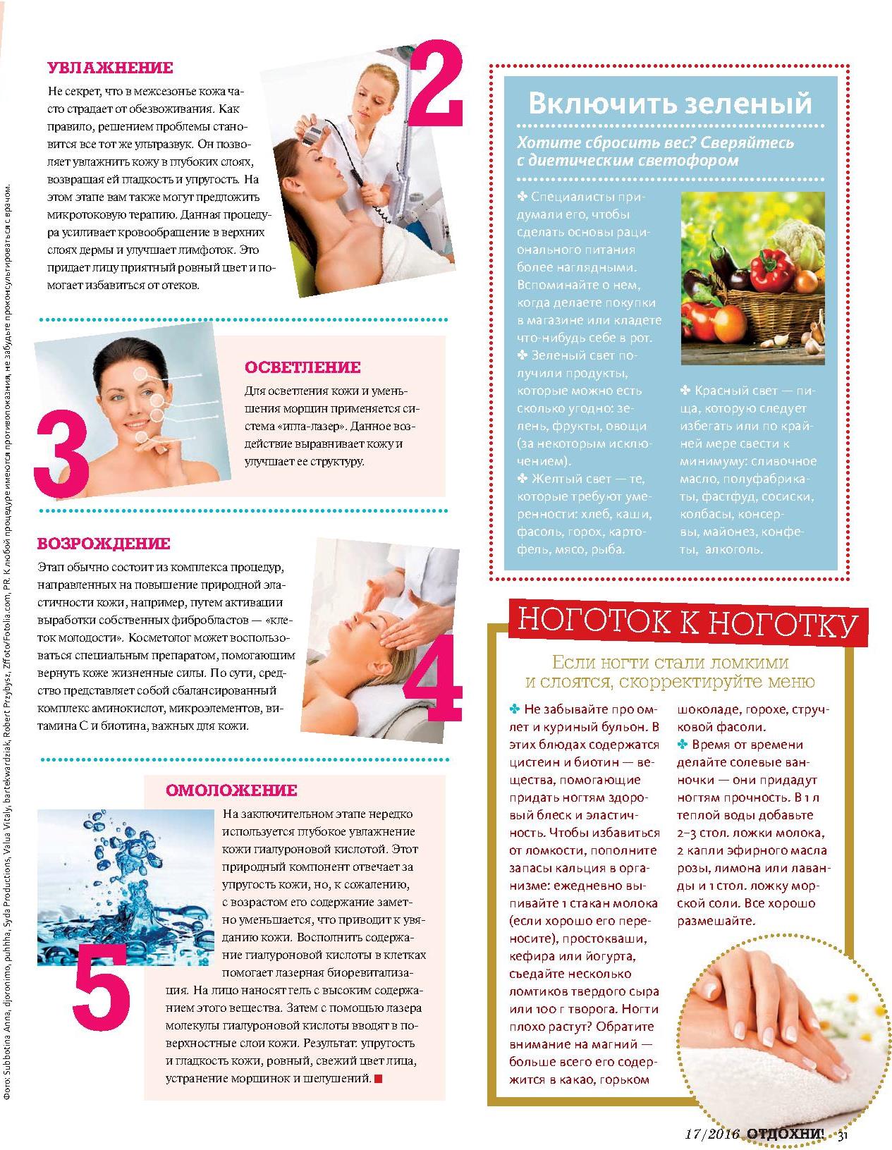Не секрет, что в межсезонье кожа часто страдает от обезвоживания. Как правило, решением проблемы становится все тот же ультразвук. Он позволяет увлажнить кожу в глубоких слоях, возвращая ей гладкость и упругость. На этом этапе вам также могут предложить микротоковую терапию. Данная процедура усиливает кровообращение в верхних слоях дермы и улучшает лимфоток. Это придает лицу приятный ровный цвет и помогает избавиться от отеков.