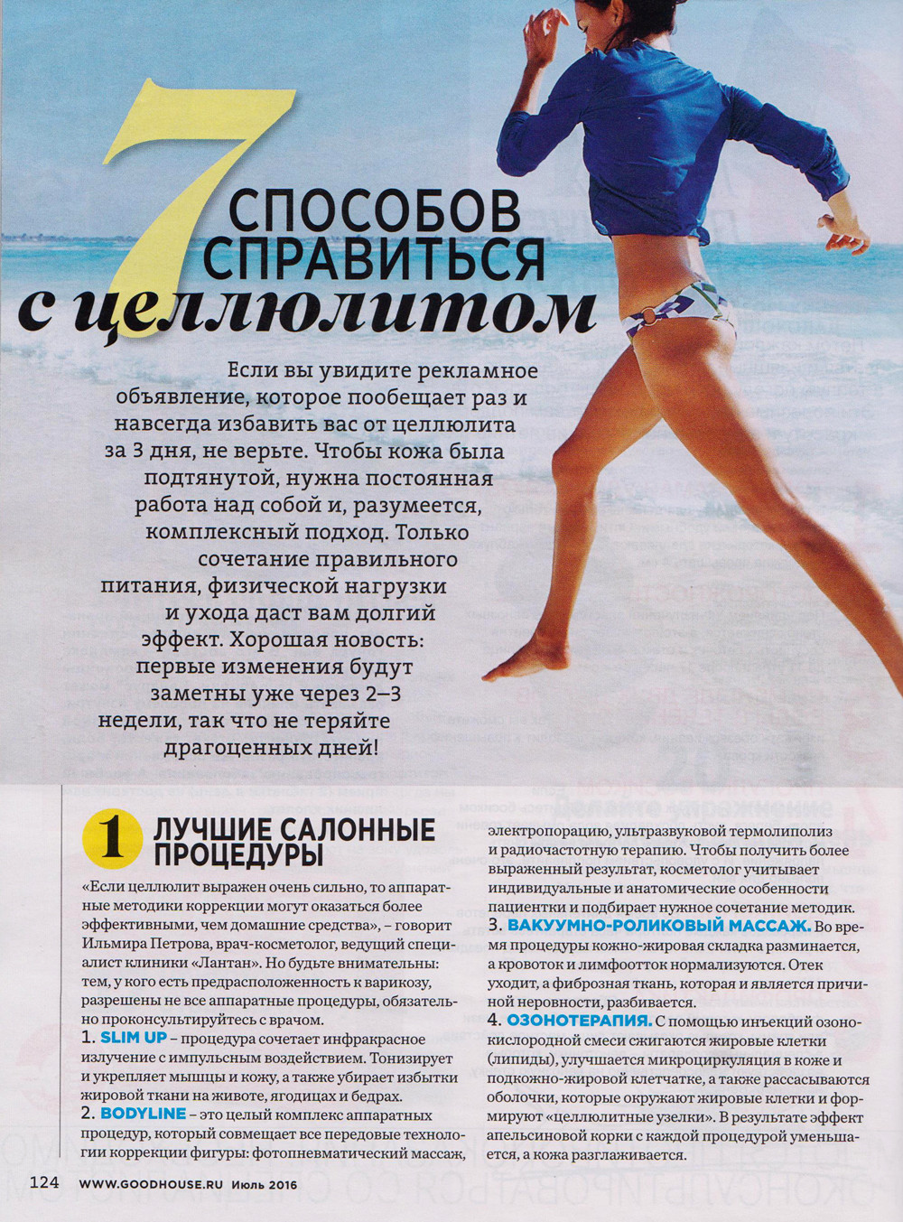«Если целлюлит выражен очень сильно, то аппаратные методики коррекции могут оказаться более эффективными, чем домашние средства», - говорит Ильмира Петрова, врач-косметолог, ведущий специалист клиники «Лантан». Но будьте внимательны: тем, у кого есть предрасположенность к варикозу, разрешены не все аппаратные процедуры, обязательно проконсультируйтесь с врачом.