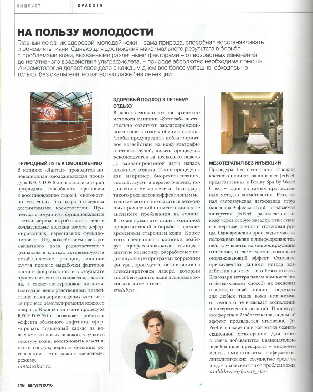 В клинике «Лантан» проводится инновационная омолаживающая процедура RECYTOS-Skin, в основе которой природная способность организма к восстановлению тканей, многократно усиленная благодаря последним достижениями косметологии. Процедура стимулирует функциональные клетки дермы вырабатывать новые коллагеновые волокна взамен деформированных, переставших функционировать. Под воздействием электромагнитного поля радиочастотного диапазона в клетках активизируются метаболические реакции, инициируется процесс выработки факторов роста и фибробластов, и в результате происходит синтез коллагена, эластина, а также гиалуроновой кислоты. Благодаря непосредственному воздействию на эпидермис и дерму запускается процесс ремоделирования кожного покрова. В конечном счете процедура RECYTOS-Skin позволяет добиться эффекта объемного лифтинга, сформировать подкожный каркас из новых коллагеновых волокон, улучшить текстуру кожи, восстановить эластичность сосудов, вернуть функцию регенерации клеток кожи к «молодому» режиму. lantanclinic.ru