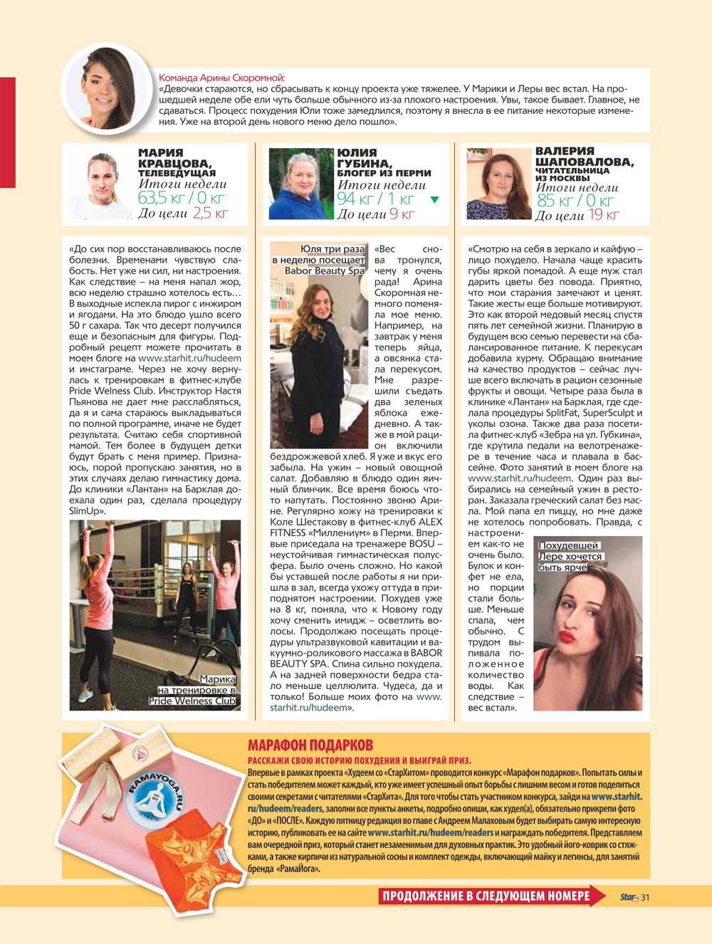Команда Арины Скоромной: "Девочки стараются, но сбрасывать к концу проекта уже тяжелее. У Марики и Леры вес встал. на прошедшей неделе обе ели чуть больше обычного из-за плохого настроения. Увы, такое бывает. Главное, не сдаваться. Процесс похудения Юли тоже замедлился. Поэтому я внесла в ее питание некоторые изменения. Уже на второй день нового меню дело пошло."