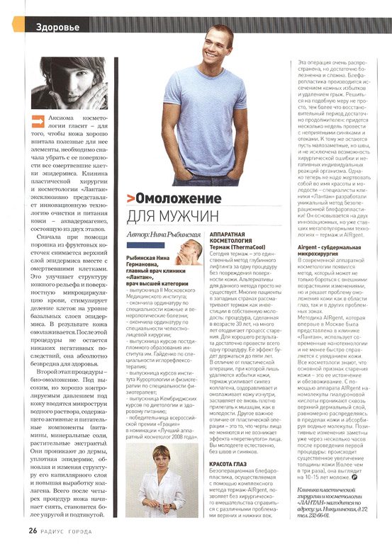 Методика airgent, которая впервые в Москве была представлена в клинике «Лантан», использует современные нанотехнологии и не менее быстро справляется с увяданием кожи. Все косметологи знают, что основной признак старения кожи - это ее истончение и обезвоживание. С помощью аппарата airgent наномолекулы гиалуроновой кислоты проникают сквозь верхний дермальный слой, равномерно распределяясь в пределах кожи и абсорбируя водные молекулы. Позитивные изменения заметны уже через несколько часов после проведения первой процедуры:происходит существенное увеличение толщины кожи (более чем в три раза), она выглядит на 10-15 лет моложе. ©