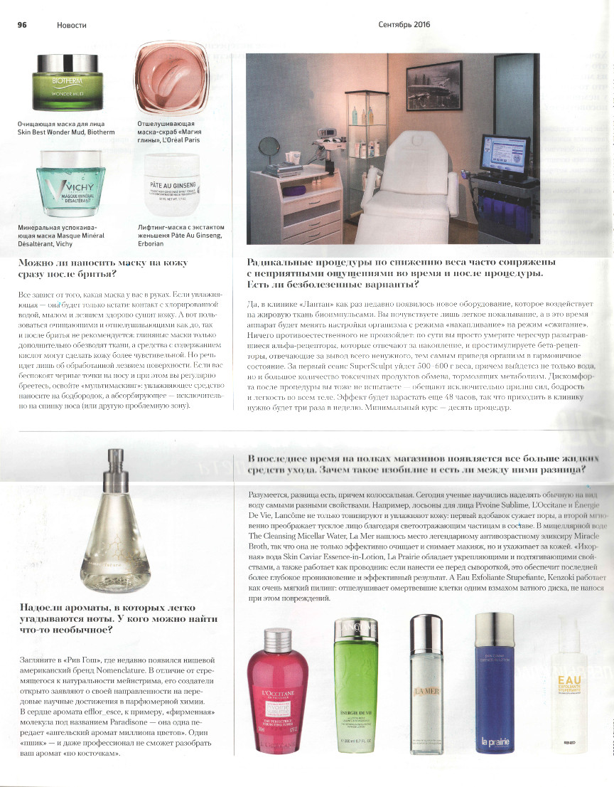 Да, в клинике «Лантан» как раз недавно появилось новое оборудование, которое воздействует на жировую ткань биоимпульсами. Вы почувствуете лишь легкое покалывание, а в это время аппарат будет менять настройки организма с режима «накапливание» на режим «сжигание». Ничего противоестественного не произойдет: по сути вы просто умерите чересчур разыгравшиеся альфа-рецепторы, которые отвечают за накопление, и простимулируете бета-рецеп- торы, отвечающие за вывод всего ненужного, тем самым приведя организм в гармоничное состояние. За первый сеанс SuperSculpt уйдет 500-600 г веса, причем выйдетсз не только вода, но и большое количество токсичных продуктов обмена, тормозящих метаболизм. Дискомфорта после процедуры вы тоже не испытаете — обещают исключительно прилив сил, бодрость и легкость во всем теле. Эффект будет нарастать еще 48 часов, так что приходить в клинику нужно 6уде> г . а педелю. Минимальный курс — десять процедур.