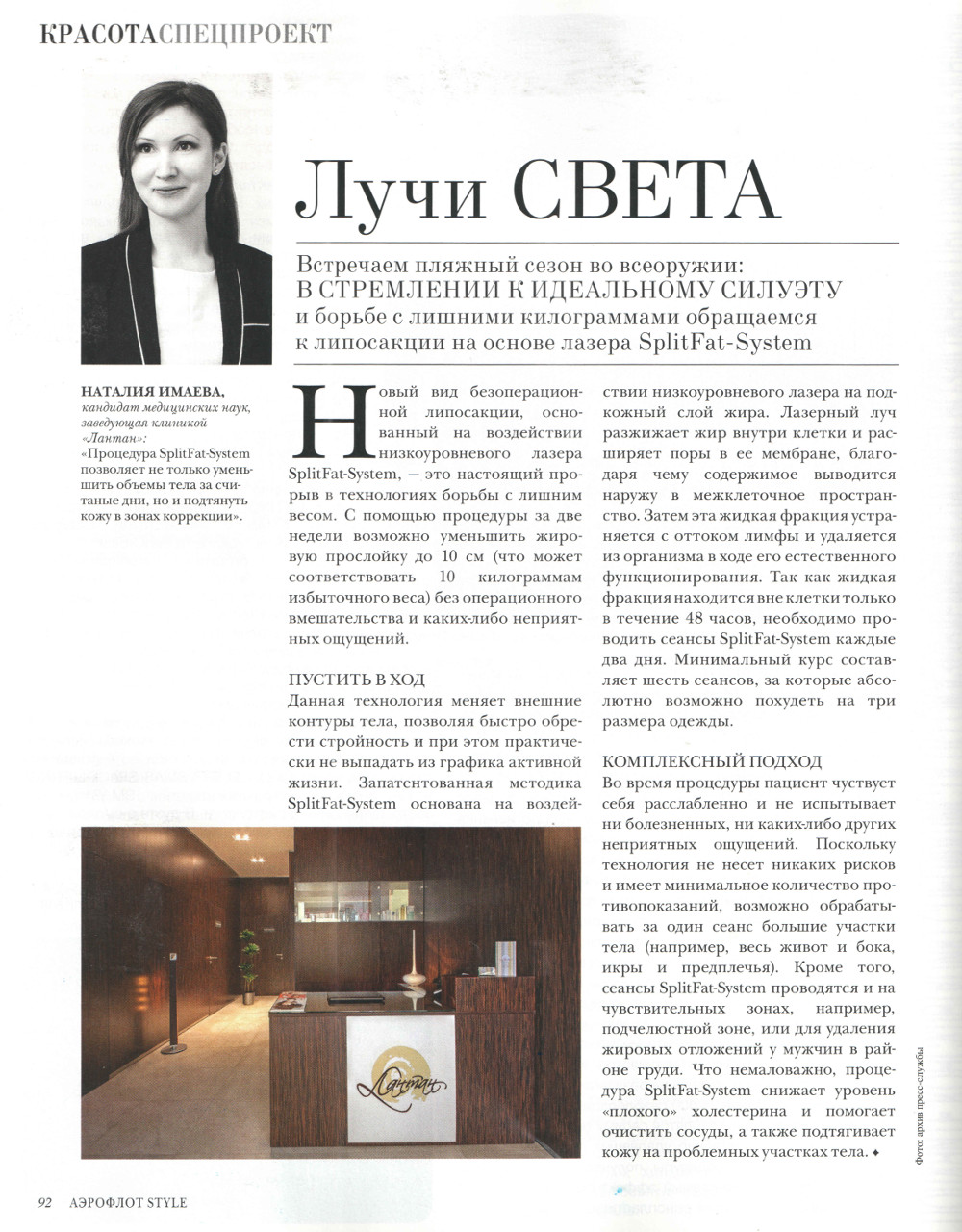 «Процедура SplitFat-System позволяет не только уменьшить объемы тела за счи- таные дни, но и подтянуть кожу в зонах коррекции».