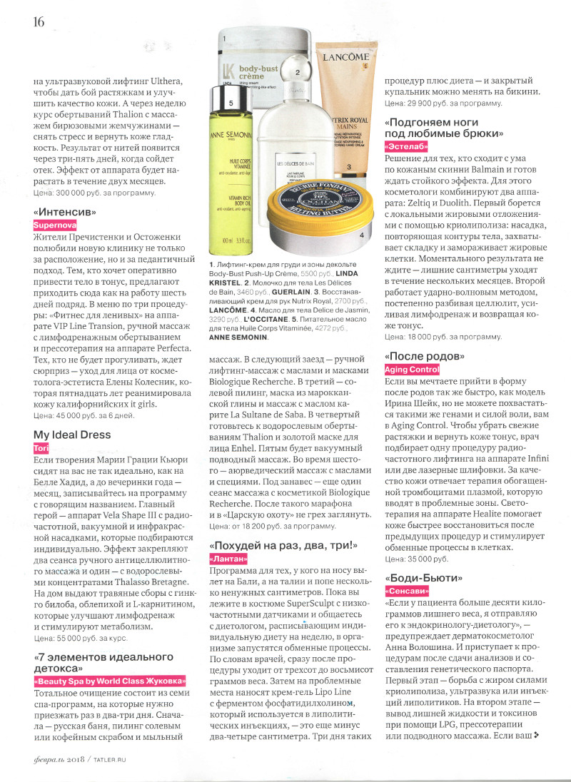 Программа для тех, у кого на носу вылет на Бали, а на талии и попе несколько ненужных сантиметров. Пока вы лежите в костюме SuperSculpt с низкочастотными датчиками и общаетесь с диетологом, расписывающим индивидуальную диету на неделю, в организме запустятся обменные процессы. По словам врачей, сразу после процедуры уходит от трехсот до восьмисот граммов веса. Затем на проблемные места наносят крем-гель Lipo Line с ферментом фосфатидилхолином, который используется в липолитических инъекциях, — это еще минус два-четыре сантиметра. Три дня таких процедур плюс диета — и закрытый купальник можно менять на бикини.