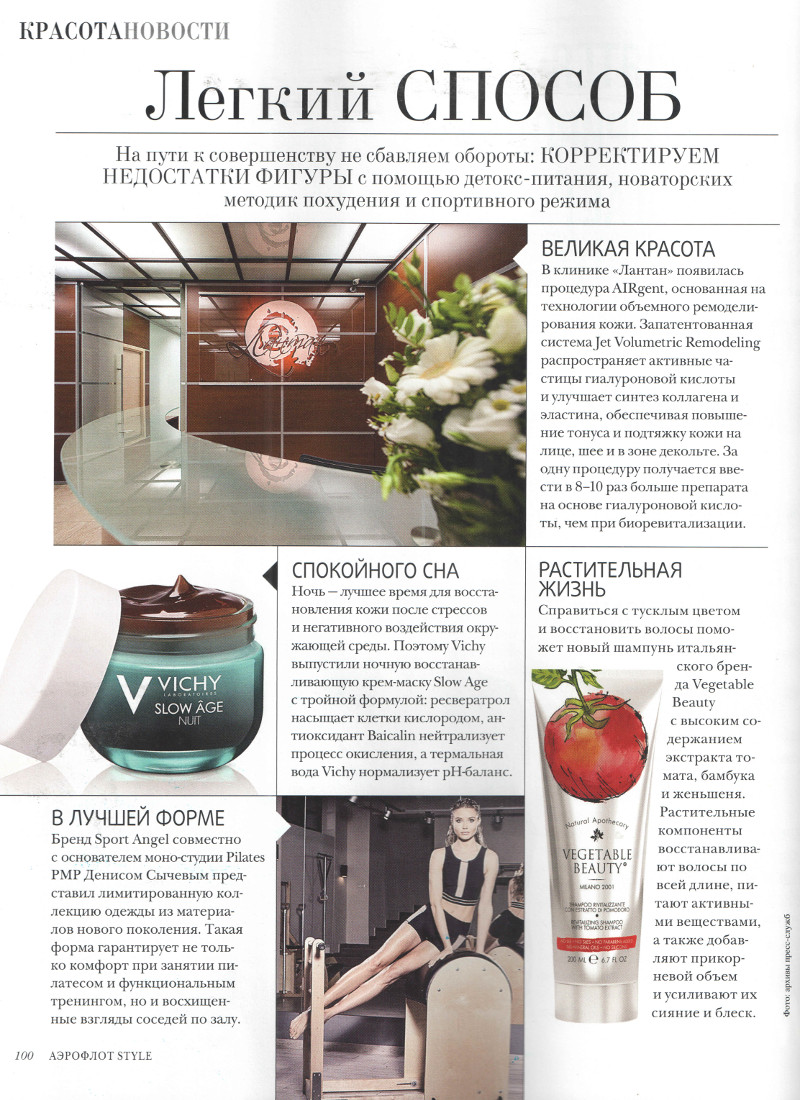 В клинике «Лантан» появилась процедура AIRgent, основанная на технологии объемного ремоделирования кожи. Запатентованная система Jet Volumetric Remodeling распространяет активные частицы гиалуроновой кислоты и улучшает синтез коллагена и эластина, обеспечивая повышение тонуса и подтяжку кожи на лице, шее и в зоне декольте. За одну процедуру получается ввести в 8-10 раз больше препарата на основе гиалуроновой кислоты, чем при биоревитализации.
