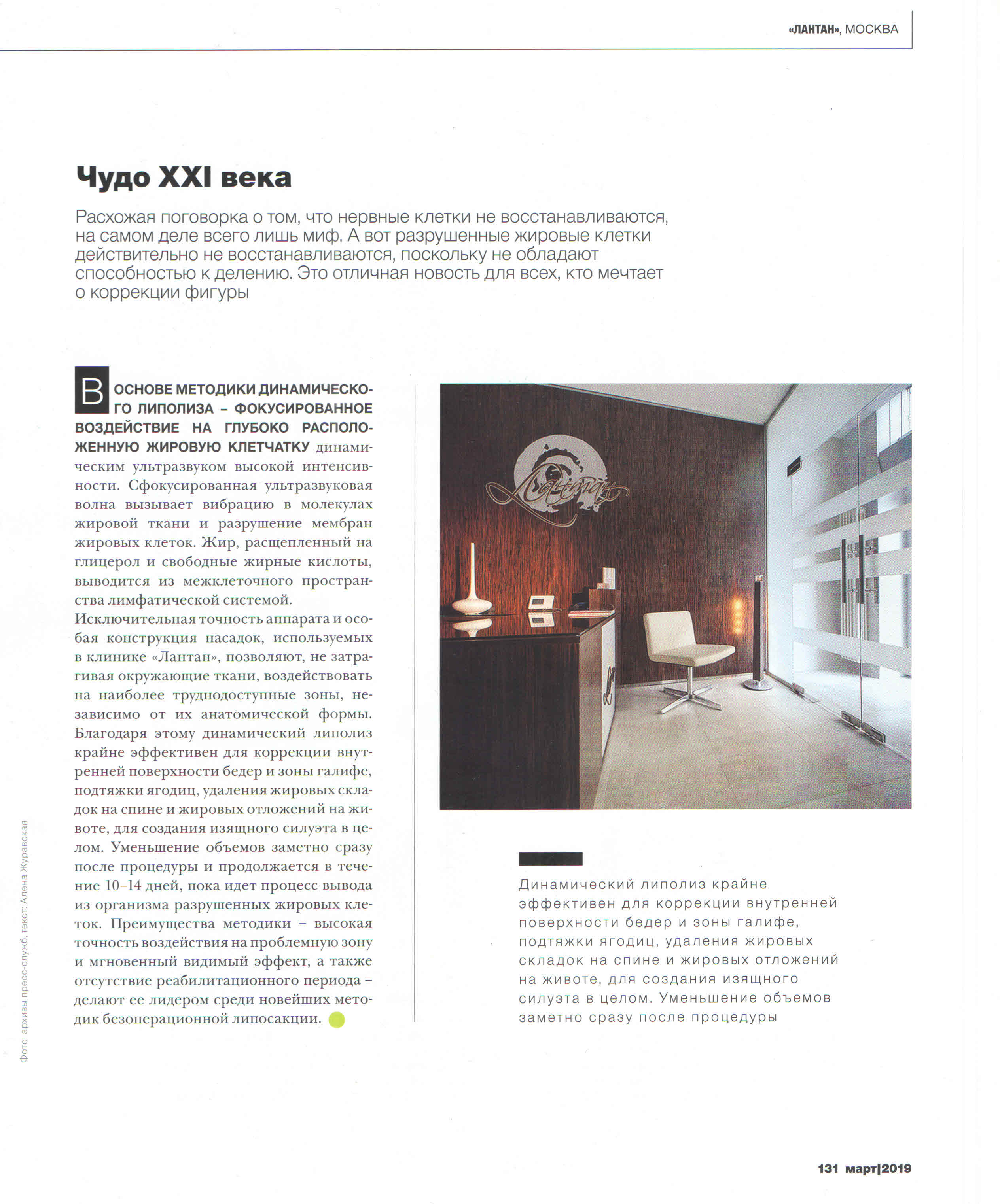 В ОСНОВЕ МЕТОДИКИ ДИНАМИЧЕСКОГО ЛИПОЛИЗА - ФОКУСИРОВАННОЕ ВОЗДЕЙСТВИЕ НА ГЛУБОКО РАСПОЛОЖЕННУЮ ЖИРОВУЮ КЛЕТЧАТКУ динамическим ультразвуком высокой интенсивности. Сфокусированная ультразвуковая волна вызывает вибрацию в молекулах жировой ткани и разрушение мембран жировых клеток. Жир, расщепленный на глицерол и свободные жирные кислоты, выводится из межклеточного пространства лимфатической системой. Исключительная точность аппарата и особая конструкция насадок, используемых в клинике «Лантан», позволяют, не затрагивая окружающие ткани, воздействовать на наиболее труднодоступные зоны, независимо от их анатомической формы. Благодаря этому динамический липолиз крайне эффективен для коррекции внутренней поверхности бедер и зоны галифе, подтяжки ягодиц, удаления жировых складок на спине и жировых отложений на животе, для создания изящного силуэта в целом. Уменьшение объемов заметно сразу после процедуры и продолжается в течение 10-14 дней, пока идет процесс вывода из организма разрушенных жировых клеток. Преимущества методики - высокая точность воздействия на проблемную зону и мгновенный видимый эффект, а также отсутствие реабилитационного периода - делают ее лидером среди новейших методик безоперационной липосакции.