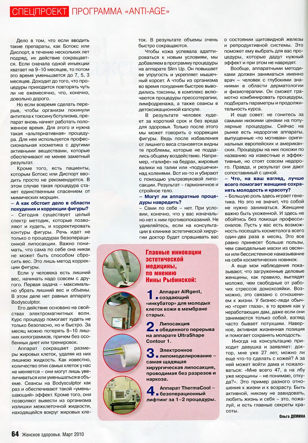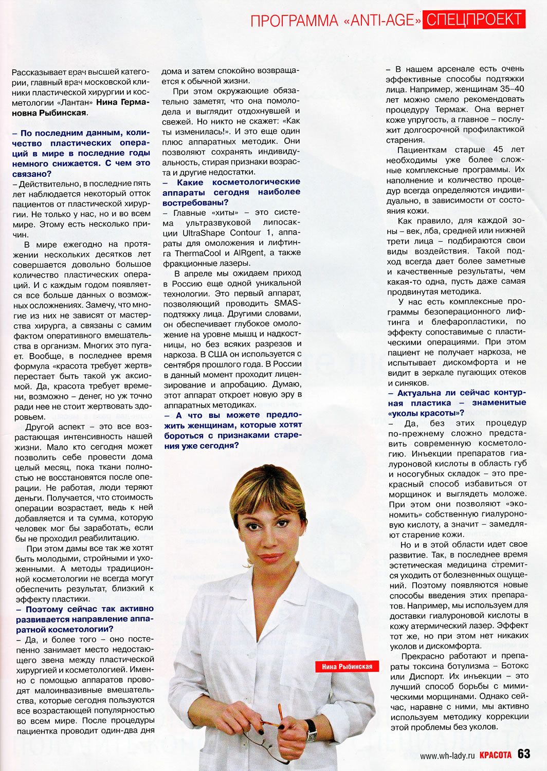 Рассказывает Врач высшей категории, главный врач московской клиники пластической хирургии и косметологии «Лантан» Нина Германовна Рыбинская.