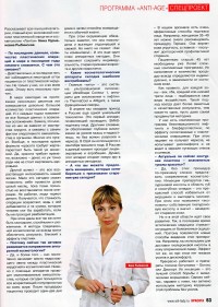 А еще мои наблюдения показывают, что загруженные деловые женщины, как правило, выглядят моложе, чем свободные от рабочих стрессов домохозяйки. Возможно, это связано с отношением к жизни. У бизнес-леди обычно «горят глаза», в то время как у неработающих дам, даже если они занимаются только собой, взгляд часто бывает потухшим. Наверное, активная жизненная позиция и помогает сохранять молодость. Иногда на консультацию приходит девушка и заявляет: доктор, мне уже 27 лет, можно ли еще что-то сделать с кожей? А за ней может войти дама и пожаловаться: «Мне всего 47, а на лбу уже морщины - не понимаю, откуда?». Это пример разного отношения к жизни и к возрасту. Быть активной, никому не завидовать, любить жизнь и себя - это, пожалуй, и есть главные секреты красоты.