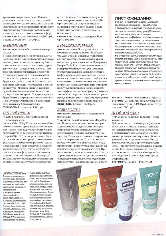 Система Slim Up To Center в клинике "Лантан" объединяет сразу несколько аппаратов. Первый проводит диагностику и разрабатывает индивидуальную программу. Второй (Slim Up) непосредственно борется с апельсиновой коркой с помощью инфракрасных лучей и микротоков (сеаны можно делать три раза в неделю, в среднем достаточно десяти). Третье устройство отвечает за лимфодренаж - он помогает устранить застой жидкости. Четвертый аппарат, представляющий собой детоксификационную капсулу, способствуют выводу токсинов. В некоторых случаях можно ограничиться аппаратом Slim Up - но точный ответ специалисты центра могут дать только после этапа диагностики (обследование бесплатно).